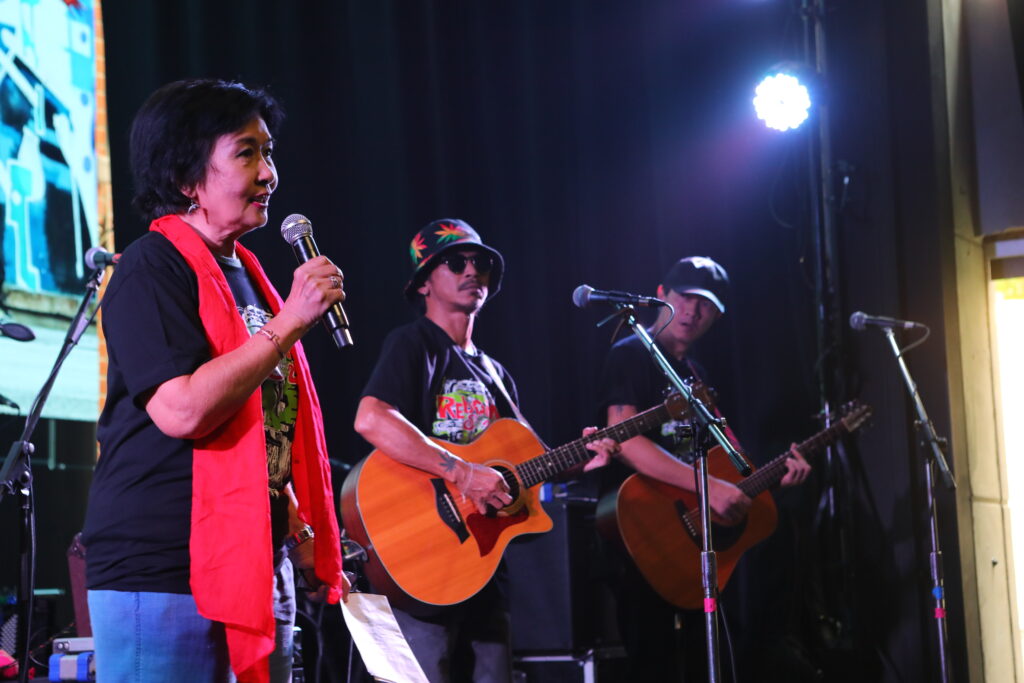 จากนั้น อ.ไข่ พร้อมวงมาลีฮวนน่า ได้ขึ้นเวทีโชว์พลังเสียงทั้งบทเพลงที่คุ้นหูและเพลงใหม่ อย่าง เพลง’แผลเมือง’ ส่วนเพลง ‘พีพี มายเดียร์’ ร้องร่วมกับน้องสีน้ำและน้องภู่กัน ในจังหวะสนุกชวนโยก ต่อด้วยการแร็ปของ 2 แรปเปอร์รุ่นใหม่ เป้ AKA PAEและชิน AKA HI ในเพลง ‘วัยวุ่น’ ก่อนที่ อ.ไข่ จะโซโล่เดี่ยวในเพลง นักดนตรี และสำนึก