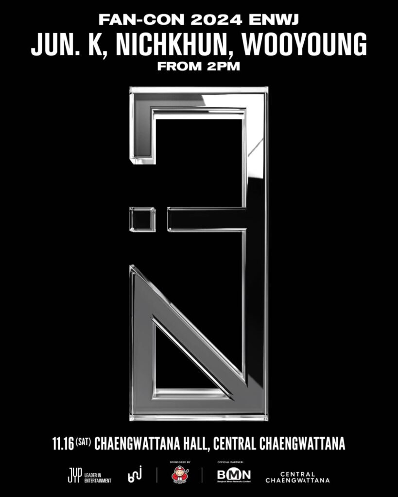 หลังจากเห็นความสนุกจากการรวมตัวกันในรายการทางยูทูบ “3 Buddies at 2PM (오후셋이)” คอนเทนต์ฮีลลิ่งฮีลใจที่มาพร้อมความสนุกสดใสกับไลฟ์สไตล์ของทั้ง 3 หนุ่ม JUN. K (จุนเค), NICHKHUN (นิชคุณ), WOOYOUNG (อูยอง) ที่ดูกันเพลินๆ แล้ว เหล่า Hottest (ฮอตเทส) ชาวไทยเตรียมตัวเตรียมใจให้ดี… นอกจากทั้ง 3 หนุ่ม จะประกาศจัดคอนเสิร์ต ‘Premium Live 2024 [ENWJ]’ ที่ประเทศญี่ปุ่นไปแล้วนั้น ทางประเทศไทยก็ไม่แผ่ว ผู้จัดไฟแรง BNJ Entertainment ไม่รอช้าประกาศจัดงาน “JUN. K, NICHKHUN, WOOYOUNG (From 2PM) Fan-Con 2024 [ENWJ] in Bangkok” งานแฟนคอนฯ ที่ฮอตเทสไทยรอคอย ในวันเสาร์ที่ 16 พฤศจิกายน 2567 เวลา 18:00 น. ที่แจ้งวัฒนะ ฮอลล์ ศูนย์การค้าเซ็นทรัล แจ้งวัฒนะ รวมตัวกันในรอบหลายปีทั้งทีแบบนี้ งานนี้เตรียมรับความฟิน ความสนุก และความอบอุ่นแบบจัดเต็มจากทั้ง 3 หนุ่มกันได้เลย