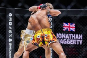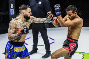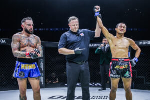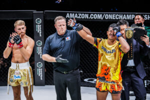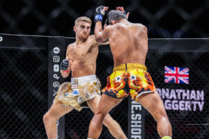 คู่เอก ซุปเปอร์เล็ก เกียรติหมู่ 9 ชนะน็อก โจนาธาน แฮ็กเกอร์ตี นาทีที่ 0:49 ของยกแรก (ชิงแชมป์โลก ONE มวยไทย รุ่นแบนตัมเวต 135 – 145 ป.)
