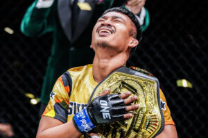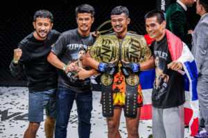 รูดม่านปิดฉากลงไปเป็นที่เรียบร้อย สำหรับศึกใหญ่แห่งปีที่แฟนกีฬาการต่อสู้ทั่วโลกทุกคนเฝ้ารอคอย ในศึก ONE 168 ที่ระเบิดความมันขึ้นเมื่อช่วงเช้าวันเสาร์ที่ 7 ก.ย.ที่ผ่านมา โดยผลปรากฏว่า “ซุปเปอร์เล็ก เกียรติหมู่ 9” สามารถสร้างประวัติศาสตร์คว้าเข็มขัดแชมป์โลก ONE มวยไทย รุ่นแบนตัมเวต (135-145 ป.) มาพาดบ่าเป็นเส้นที่ 2 ได้สำเร็จ ขณะที่ “เสกสรร อ.ขวัญเมือง” คว้าชัยชนะทีเคโอ ในศึกสายบู๊ระดับตำนาน ได้อย่างสวยงาม