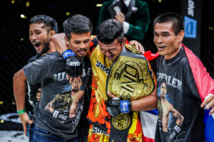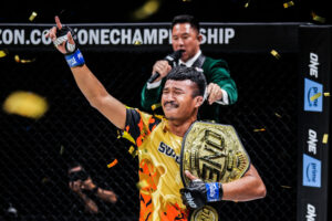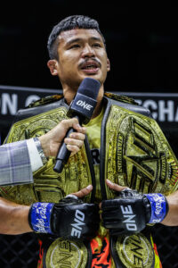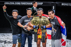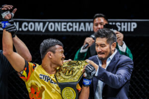 ส่งผลให้ยอดมวย วัย 28 ปี จากบุรีรัมย์ กระชากเข็มขัดมวยไทย รุ่นแบนตัมเวต มาครองได้สำเร็จ ผงาดเป็นแชมป์โลก ONE 2 รุ่น 2 กติกา พร้อมคว้าโบนัส 50,000 ดอลลาร์สหรัฐ (เกือบ 1.7 ล้านบาท) ในศึก ONE 168 เมื่อช่วงเช้าวันเสาร์ที่ 7 ก.ย.ที่ผ่านมา ณ สังเวียน บอล อารีนา สหรัฐอเมริกา