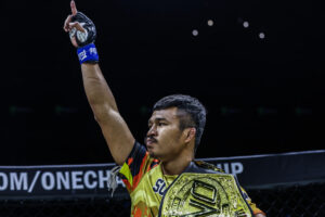 “ซุปเปอร์เล็ก เกียรติหมู่ 9” แชมป์โลก ONE คิกบ็อกซิ่ง รุ่นฟลายเวต (125-135 ป.) ประกาศศักดามวยไทยให้แฟนมวยทั่วโลกได้เห็น หลังโชว์สับศอกส่ง “โจนาธาน แฮ็กเกอร์ตี” แชมป์โลก ONE มวยไทย และคิกบ็อกซิ่ง รุ่นแบนตัมเวต (135-145 ป.) จากอังกฤษ จอดเพียงแค่ 49 วินาที ของยกแรก