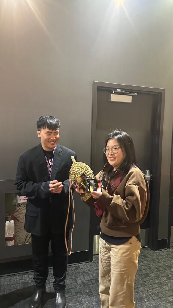 พร้อมกล่าวรีวิวถึงหนังว่า ‘เป็นหนังที่หักมุมไปมา อย่างกับถนนคดเคี้ยวที่แม่ฮ่องสอน’ และยังขอถ่ายรูปกับผู้กำกับ-โปรดิวเซอร์ เป็นจำนวนมาก มีแฟนภาพยนตร์บางรายอินจัดถึงขนาดเอา ‘เปลือกทุเรียน’ มามอบให้ผู้กำกับอีกด้วย