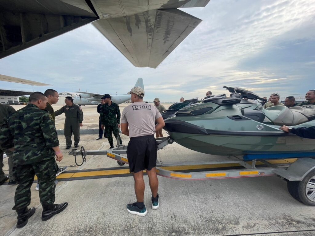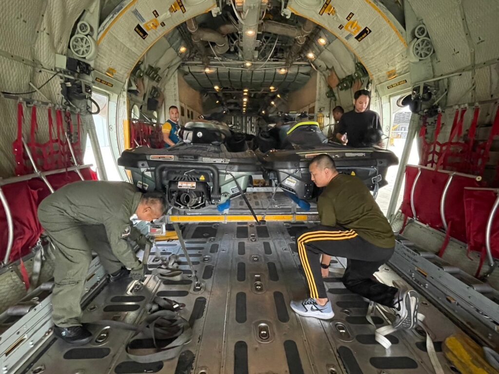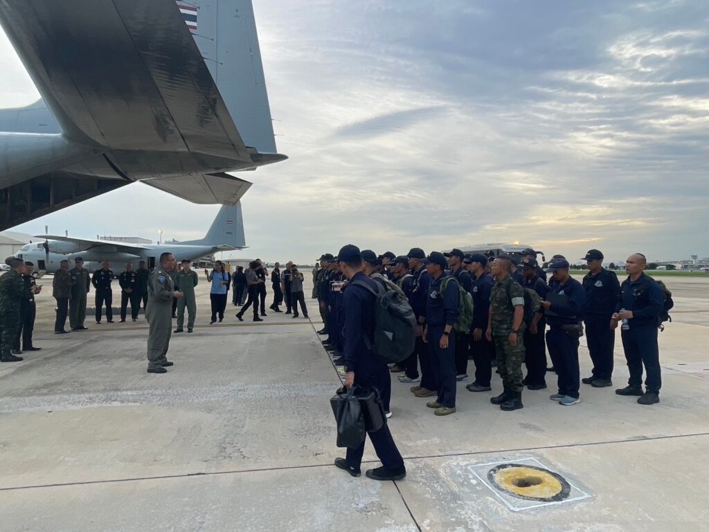 ทอ.ส่ง C-130 ลำเลียงกำลังพลพร้อมอุปกรณ์ค้นหาและช่วยชีวิตช่วยเหลือผู้ประสบภัยน้ำท่วมในพื้นที่อำเภอแม่สาย จังหวัดเชียงราย