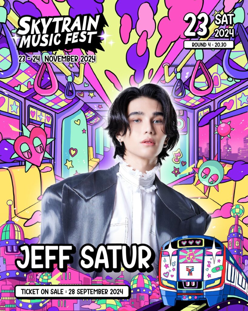 ถึงเวลาเปิดตัว 7 ศิลปินที่จะร่วมเปิดประสบการณ์ Music Fest สุดเอ็กคลูซีฟกับการออกเดินทางในขบวนรถไฟฟ้าบีทีเอสพร้อมฟังเพลงเพราะอย่างใกล้ชิดที่สุด เรียกว่าเอาใจแฟนเพลงอย่างทั่วถึง โดยศิลปินที่ร่วมงานนี้ได้แก่ 4EVE , ATLAS , BOWKYLION, INK WARUNTORN , JEFF SATUR, NONT TANONT และ THE TOYS จากชื่อของศิลปินเรียกได้ว่าการันตีเอเนอร์จี้ความสุขที่ไม่ซ้ำใคร ใน “SkyTrain Music Fest” ซึ่งศิลปินทั้ง 7 พร้อมแล้วที่จะสร้างความสนุกในขบวนรถไฟฟ้า โดยการแสดงแบ่งเป็น 7 รอบ 7 ขบวน ซึ่งแต่ละขบวนจะมีศิลปินประจำขบวนที่พร้อมสร้างความสนุกสนานให้กับแฟนๆ ในวันเสาร์ 23 พ.ย. 2567 และ วันอาทิตย์ 24 พ.ย. 2567
