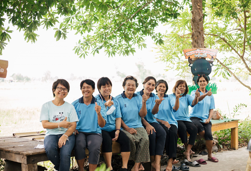 และนั่นเป็นจุดเริ่มต้นการรวมกลุ่มของชาวบ้านในนาม ‘วิสาหกิจชุมชนแม่บ้านอินเตอร์ (ผู้ใหญ่เกิ้ง)’