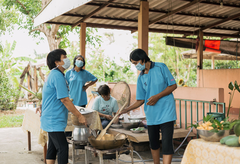 “วันนั้นพี่ต้องทำทุกทางเพื่อให้คนในชุมชนมีกิน ชาวบ้านทำส้มแผ่น กล้วยตาก ทำขนม ทำทุกอย่างที่พอทำได้ จากนั้นพี่จะนำสินค้าไปขายที่ตลาด อตก. ขายได้บ้าง ขายไม่ได้บ้าง แต่พี่ต้องขายให้หมด ให้ได้เงินมามากที่สุด พี่ไม่อาย เพราะพวกเขารอพี่อยู่” เธอเล่าพร้อมสายตาอันมุ่งมั่น