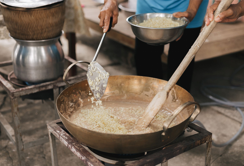 แต่สถานการณ์ก็ยังไม่ดีขึ้น ชาวบ้านอยู่ในสภาพอดอยาก ไม่มีอะไรกิน แม้แต่ผักก็ปลูกไม่ขึ้น จากอู่ข้าวอู่น้ำถูกแทนที่ด้วยความแห้งแล้ง ผู้ใหญ่เกิ้งจึงคิดหาทางออกด้วยการหาอาชีพเสริมให้แก่คนในชุมชน ด้วยการทำขนมไทยขาย ซึ่งเป็นอีกภูมิปัญญาที่ชาวชัยนาทสั่งสมกันมานับร้อยปี