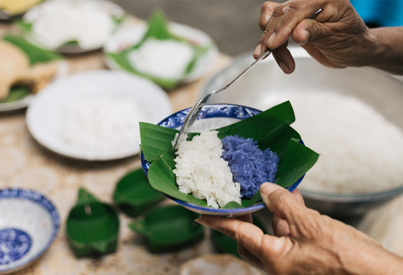 “ก่อนหน้านี้ พี่ไม่รู้จักออนไลน์เลย ก็ได้ทีมเน็ตทำกินเขามาช่วย วางอย่างนี้สิ เอาดอกไม้มาตกแต่งให้สวยสิ เปิดเพจออนไลน์ให้ สอนถ่ายรูปทำยังไงให้สวย ให้น่ากิน จนตอนนี้ใครๆ ก็รู้จักข้าวเหนียวหน้าควายลุย ลูกค้าส่วนใหญ่เป็นโรงแรม บางช่วงมีออเดอร์เยอะจนทำไม่ทันก็มี” ผู้ใหญ่เกิ้งเล่าอย่างมีความสุข
