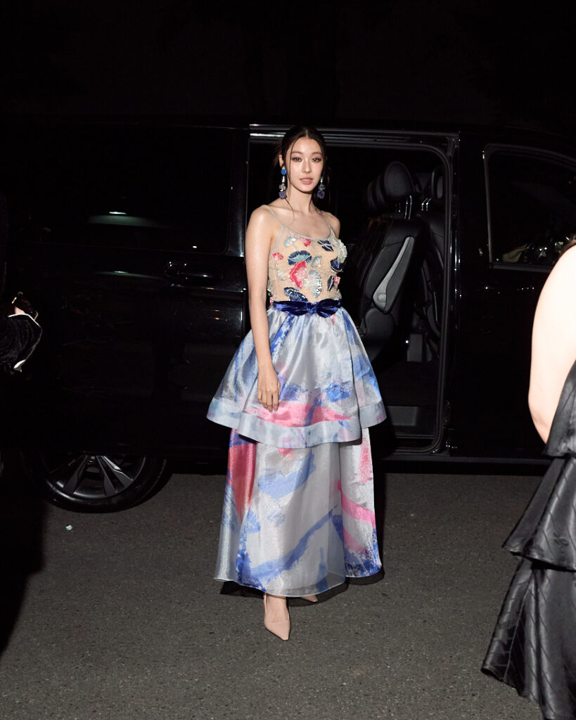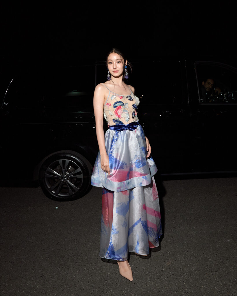โดยสาว น้ำตาล ทิพนารี ซึ่งกำลังมีซีรีส์แนวเกิร์ลเลิฟ เผยว่า เป็นครั้งแรกที่ได้สัมผัสประสบการณ์งานมิลานแฟชั่นวีคครั้งแรก รู้สึกตื่นเต้นมากๆ และชอบแต่ตั้งแต่ลุคแรกเลย เพราะคอลเลกชันนี้มาในคอนเซ็ปต์Future perfect แสดงถึงความเท่าเทียมทางเพศ ผ่านเสื้อผ้าผู้หญิงที่สามารถใส่สูท ผูกไท แต่ยังคงความเฟมินีน โดยสาวน้ำตาลปรากฏตัวในลุคสายเดี่ยวซีทรู เผยความเซ็กซี่แฝงไปด้วยความหรูหราของลวดลายปักรูปดอกไม้อย่างประณีต แมตช์กับกระโปรงที่มีดีเทลเล่นกับเลเยอร์นำมาด้วยการซ้อนกันของผ้าซีทรูที่มีลายปริ้นสีสดใส และเข็มขัดจากผ้ากำมะหยี่สีน้ำเงินเข้ม จาก Emporio Armani คอลเลกชัน Fall/Winter 2024