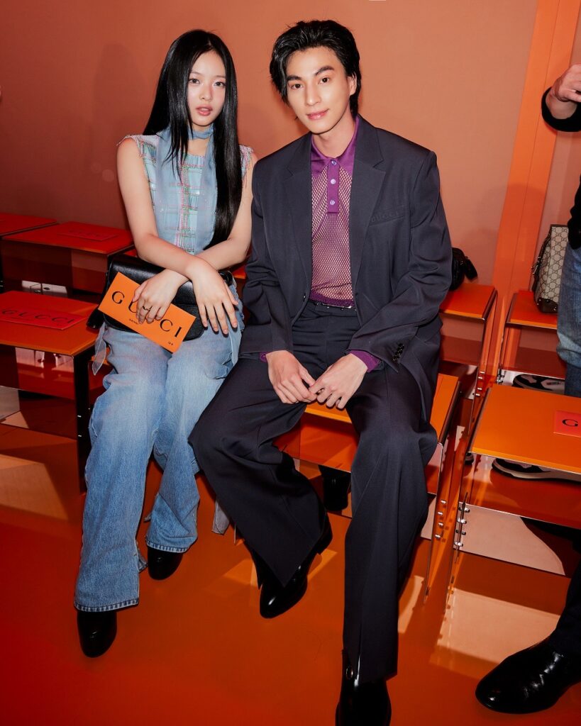 โดยงานนี้หนุ่มกลัฟปรากฏตัวให้ช่างภาพรัวชัตเตอร์กับลุคโดดเด่นและกร้าวใจสุดๆ ด้วยสูทเข้าเซ็ทสีเทาเข้ม พร้อมดึงดูดทุกสายตาด้วยเสื้อโปโลซีทรูสีม่วงด้านใน คอมพลีตลุคด้วยเข็มขัดประดับฮาร์ดแวร์ Jackic โทนสีเงิน และรองเท้าบู๊ทรุ่น Horsebit นอกจากหนุ่มกลัฟจะนั่งฟร้อนต์โรวชมโชว์ในฐานะ BA Gucci แล้ว เจ้าตัวยังได้กระทบไหล่ศิลปินเกาหลีใต้ชื่อดังระดับโลกอย่าง “จิน” (Jin) แห่งวง BTS และยังได้พบกับนักร้องสาว “ฮันนิ” (Hanni) จากวง New Jeans รวมถึงนักแสดงสาวจากจีน “เถียนซีเว่ย” (Tian Xiwei) อีกด้วย