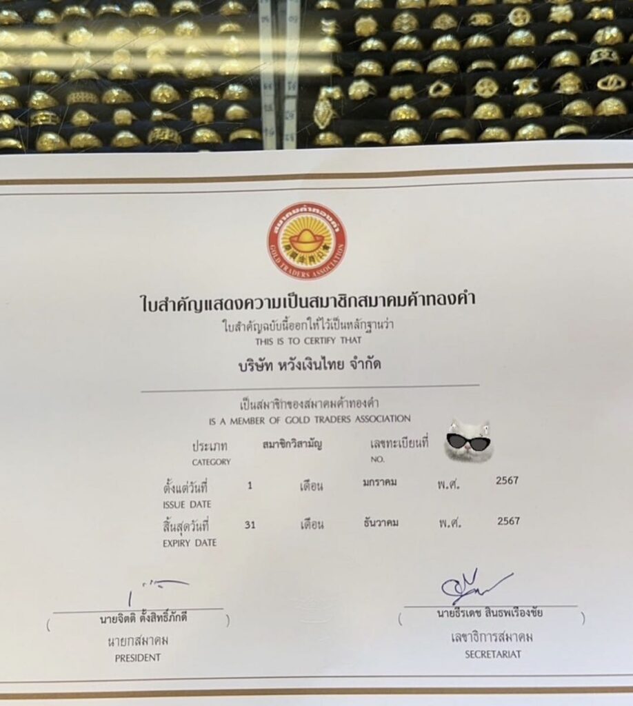 #ใบรับรองความเป็นสมาชิกสมาคมค้าทองคำแห่งประเทศไทย