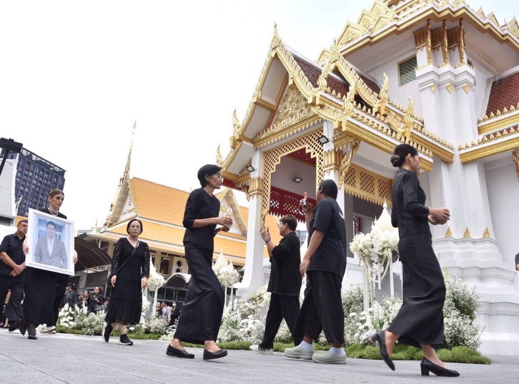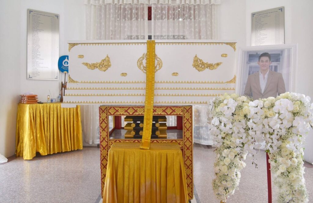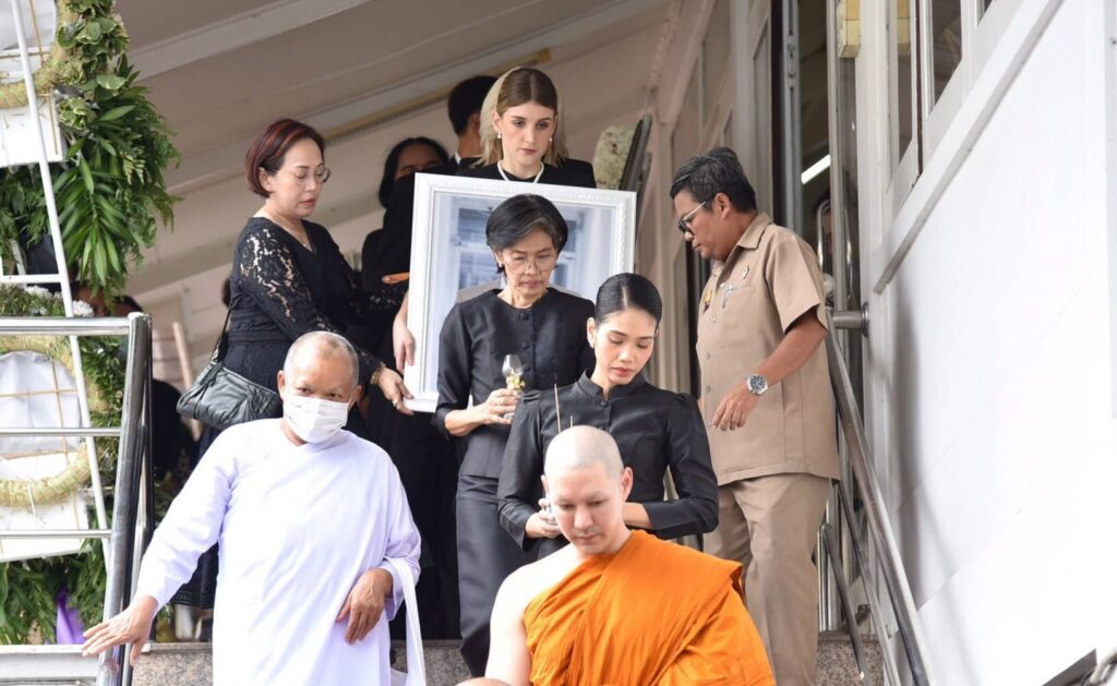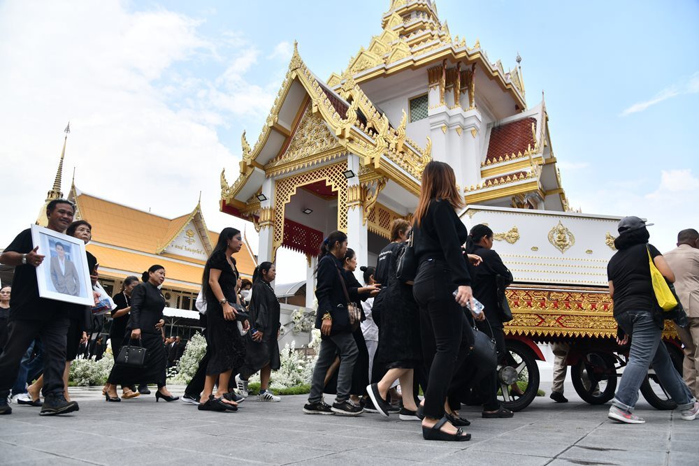 สุดเศร้า! เคลื่อนร่างอ๋อม อรรคพันธ์ขึ้นเมรุเพื่อรอประกอบพิธีฌาปนกิจ ภรรยากอดรูปภาพไม่ห่าง