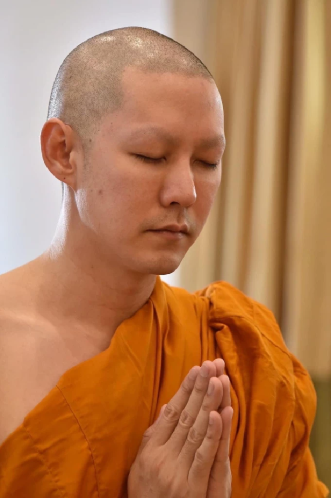 โดยช่วงเช้าทางด้านนักแสดงหนุ่มแอมป์ พีรวัศได้ ทำพิธีบรรพชาสามเณร บวชหน้าไฟ