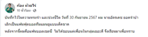 “บันทึกไว้ในความทรงจำ และช่วงชีวิต วันที่ 30 กันยายน 2567 ผม นายอัครเดช ยอดจำปา เลิกเป็นแฟนฟุตบอลทีมแมนยูแบบเด็ดขาด หลังจากนี้ผมคือแฟนบอลเชลซี ไม่ได้ชอบแต่เพื่อนในกลุ่มเยอะดี จึงเรียนมาเพื่อทราบ”