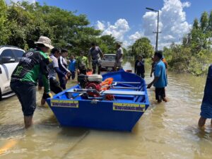 อัพเดทสถานการณ์อุทกภัยกลุ่มจังหวัดภาคเหนือตอนบน และภาคตะวันออกเฉียงเหนือ ล่าสุดทีมเจ็ตสกีจิตอาสา ของสมาคมกีฬาเจ็ตสกีแห่งประเทศไทยฯ ทีม Liqui Moly Jetski Team by Nakorn นำโดยคุณ “เปิ้ล” นาคร ศิลาชัยและคุณ “จูน” กษมา ศิลาชัย และทีม PTT Lubricants Gold Dragon Let’s Go Group ทีมเจ็ตสกียักษ์ใหญ่แห่งภาคอีสาน นำโดยหัวเรือใหญ่ของทีม คุณทวีผล สุขเกษม และทีมงานร่วม 10 ชีวิต ประกอบด้วยคุณมันทนา สุขเกษม คุณธนินท์รัฐ มงคลนันทิภาคย์ คุณจิตตานันทิ์ พุฒพิทยารัตน์ คุณภีม์พัฒน์ สารสุวรรณ์ คุณอินทิตา วรชิตาพรรณ คุณวราห์ สุทธิไชยวัฒน์ คุณไวพจน์ อินทะผิว และคุณไพโรจน์ ศรีกุลวงนิมิตร ฯลฯ ยังคงปักหลักลงพื้นที่ บริเวณจังหวัดหนองคายและอุดรธานี สนับสนุนหน่วยงานราชการและเอกชนเพื่อช่วยเหลือผู้ประสบอุทกภัย ทางภาคอีสานอย่างต่อเนื่อง เป็นเวลาร่วมแล้วกว่า 2 สัปดาห์ ถึงแม้สถานการณ์เริ่มคลี่คลาย ไม่มีฝนตกอย่างต่อเนื่องทำให้มวลน้ำเริ่มลดในบางพื้นที่ แต่ประชาชนยังคงต้องการความช่วยเหลืออยู่ ซึ่งล่าสุด ได้นำสิ่งของที่ได้รับการบริจาคผ่านทางสมาคมกีฬาเจ็ตสกีแห่งประเทศไทยฯ ถุงยังชีพของปตท. และของบริจาคที่เหล่าทีมเจ็ตสกีและนักเจ็ตสกี ได้ช่วยกันระดมทั้งเครื่องอุปโภค บริโภค เวชภัณฑ์ ยารักษาโรค ข้าวสาร อาหารแห้งต่าง ๆ นำมาแจกจ่าย ณ บ้านโนนสมบูรณ์ ตำบลนากว้าง และตำบลกุดสระ จังหวัดอุดรธานี