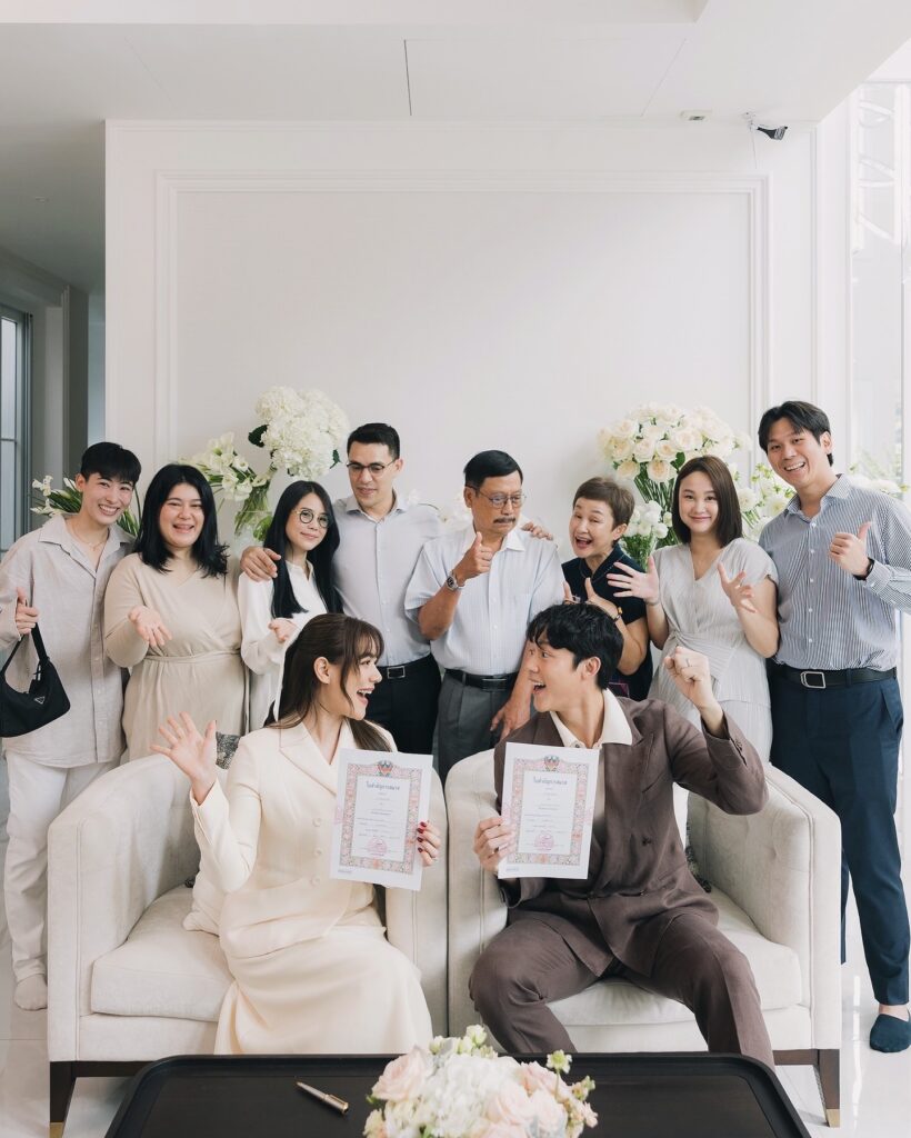 ล่าสุดทั้งคู่ก็ถือฤกษ์ดีในเดือนตุลาคม เกี่ยวก้อยกันจดทะเบียนสมรสอย่างเป็นทางการ เริ่มต้นการเป็นสามี ภรรยา อย่างถูกต้องตามกฏหมายแล้ว ท่ามกลางความยินดีของครอบครัวของทั้งคู่