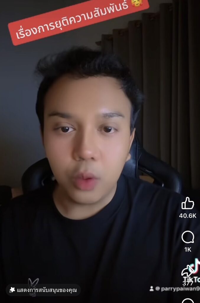 ล่าสุดทางด้าน “แพรรี่” ก็ได้ออกมาอัดคลิปประกาศยุติความสัมพันธ์ว่า “ยืนยันว่าตอนนี้ยุติความสัมพันธ์กับน้องฟอร์ดเป็นเรื่องของความรู้สึกจากใจจริง ว่าการถอยออกมาอยู่ที่จุดของตัวน้องและตัวดิฉันมีอิสระในความสบายใจมากขึ้นเป็นสิ่งที่ดี ส่วนตัวมองว่าเป็นการลดสถานะไม่ใช่ตัดขาด ยังคงมีปรารถนาที่ดีกับน้องเสมอ  อันนี้เป็นการยุติความสัมพันธ์จริงๆไม่ใช่เป็นคอนเทนต์อะไร ยอมรับว่าเสียใจเพราะเราก็คบกันมาโดยประมาณ1ปี7เดือน”