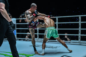 คู่เอกของรายการ แชมป์โลก ONE คิกบ็อกซิ่ง รุ่นไลต์เวต (155-170 ป.) “อเล็กซิส นิโคลัส” วัย 26 ปี จากฝรั่งเศส ป้องกันตำแหน่งครั้งแรกจากคู่ปรับเก่า “รีเกียน เออร์เซล” วัย 31 ปี จากซูรินามอดีตเจ้าของเข็มขัดเส้นนี้