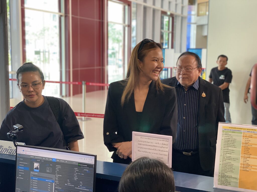 นักร้องสาว ”จ๊ะ นงผณี มหาดไทย“ พร้อม ”นายมนตรี บานเย็น“ เดินทางมายัง กองบังคับการปราบปรามการกระทำความผิดเกี่ยวกับการคุ้มครองผู้บริโภค (บก.ปคบ.) เข้าพบพนักงานสอบสวน บก.ปคบ. เพื่อแสดงความบริสุทธิ์กรณีร่วมไลฟ์สดขายทอง“แม่ตั๊ก-ป๋าเบียร์” ซึ่งกำลังเป็นคดีดังในตอนนี้