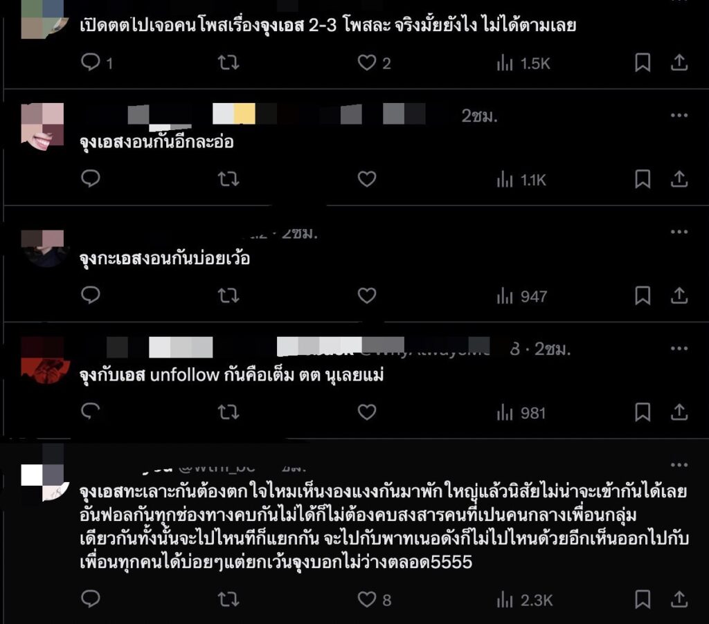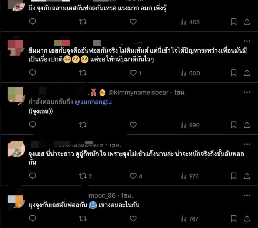 ตกเป็นประเด็นที่หลายคนให้ความสนใจ เอ๊ะว่ามันยังไงกันนะ สำหรับนักแสดงจากค่ายGMMTV “จุง อาเชน” กับ “เอส ศุภ” เมื่อแฮชแท็ก #จุงเอส ขึ้นเทรนด์X ท่ามกลางความสงสัยว่าเกิดอะไรขึ้น พอเข้าไปส่องจะเห็นว่าชาวเน็ตเข้ามาคอมเมนต์ส่อแวว “จุง-เอส” ทะเลาะกันหรือเปล่า โดยคอมเมนต์อาทิ จุงเอสอันฟอลกันแล้ว แรงมาก , จุงเอสเขางอนกันอีกแล้วหรอ , จุงเอสเขาทะเลาะกันหรอ และอีกมากมาย