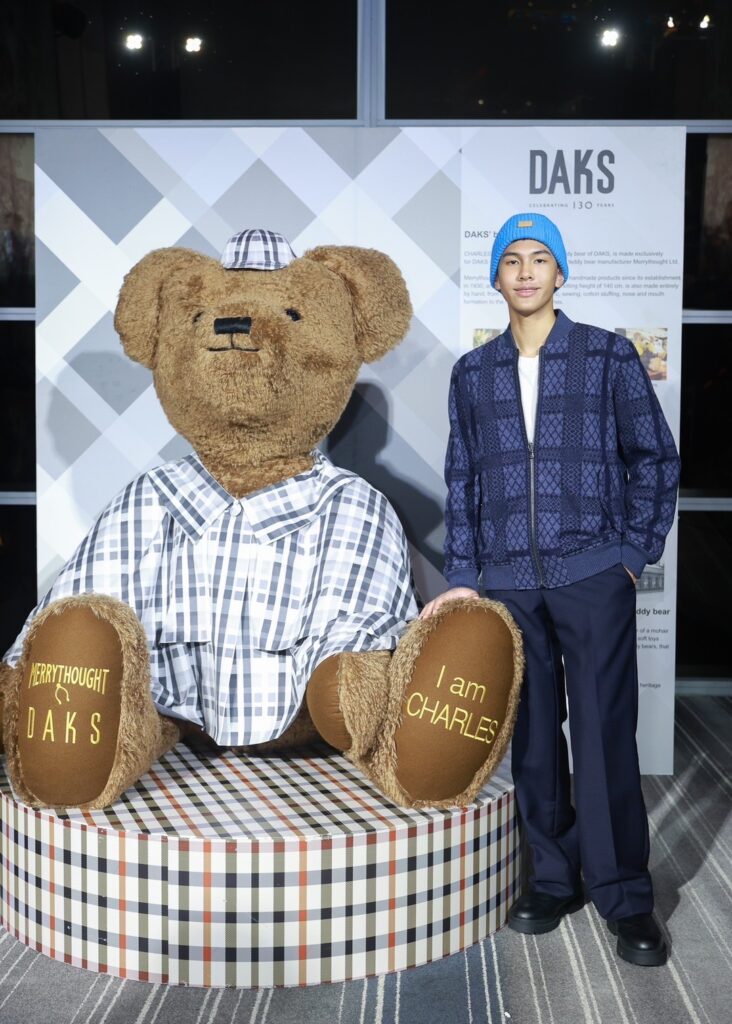ตุ๊กตาหมี HANDMADE มีเพียง 4 ตัวในโลก ได้แก่ ALEC ที่ประเทศญี่ปุ่น, ALICE ที่เกาะไต้หวัน, JEREMY ที่เขตบริหารพิเศษฮ่องกง และ CHARLES ที่ประเทศไทย ตั้งอยู่ที่ DAKS FLAGSHIP STORE ชั้น 1 ของห้างสรรพสินค้า CENTRAL WORLD DAKS AUTUMN/WINTER 2024 นำเสนอศิลปะและการออกแบบผ่านเสื้อผ้ารวมทั้งสิ้น 54 ลุค โดยแบ่งการจัดแสดงเป็น 2 ส่วนด้วยกัน ได้แก่ แฟชั่นโชว์ “130th ANNIVERSARY COLLECTION และ CAPSULE COLLECTION จำนวน 40 ลุคบนรันเวย์ ส่วนอีก 14 ลุค เป็นการสวมใส่ในหุ่นซึ่งจัดแสดงในรูปแบบ FASHION EXHIBITION เพื่อให้ผู้ชมได้สัมผัสแนวคิดแฟชั่นร่วมสมัยที่ MR. LUC GOIDADIN (ลุค โกอิเดดิน) ผู้ออกแบบได้อย่างใกล้ชิด ตั้งแต่ก้าวแรกที่ผู้ชมแฟชั่นโชว์เดินเข้าสู่ภายในงาน อีกทั้งจะได้รับรู้เรื่องราวย้อนยุคของ DAKS ที่มี ประวัติศาสตร์ยาวนานถึง 130 ปี พร้อมสัมผัสถึงกลิ่นอายของโลกแฟชั่นที่มีความสำคัญในแต่ละทศวรรษ รวมถึงการจัดแสดงตราสัญลักษณ์จำลองที่ได้รับพระราชทานพระราชานุญาตให้ใช้ตราสัญลักษณ์ประจำพระองค์ (ตราลัญจกร) จากราชวงศ์อังกฤษ (THE ROYAL WARRANTS) ผ่าน HISTORY EXHIBITION