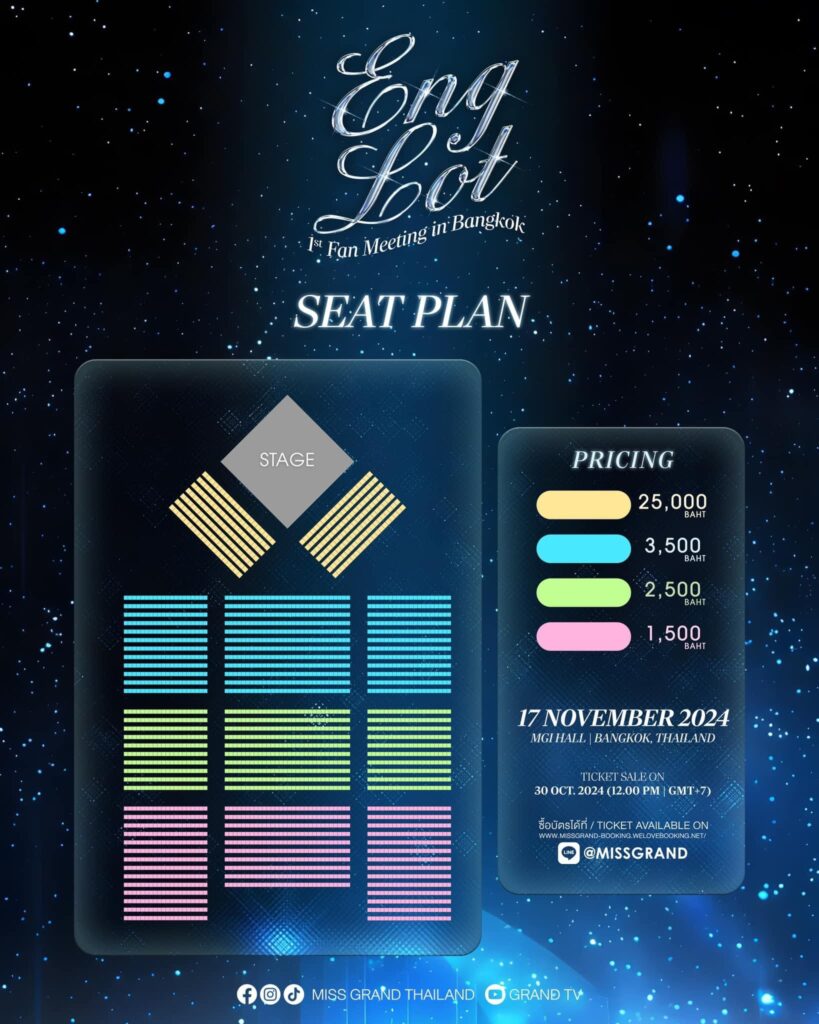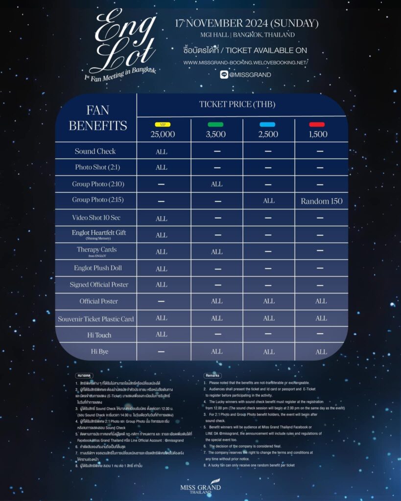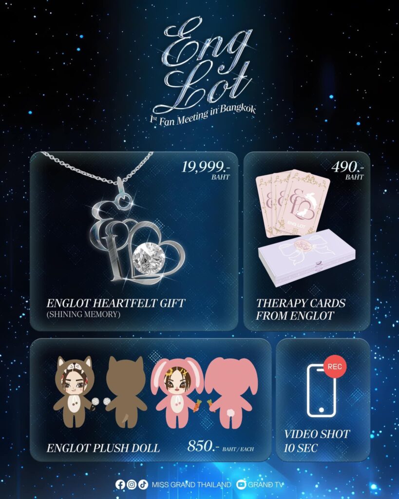 โดยทางเพจ miss grand thailand ได้ออกมาโพสต์ข้อความว่า “✨ เตรียมพบกับงาน 1st Fan Meet Englot in Bangkok ที่ทุกคนรอคอย! ✨