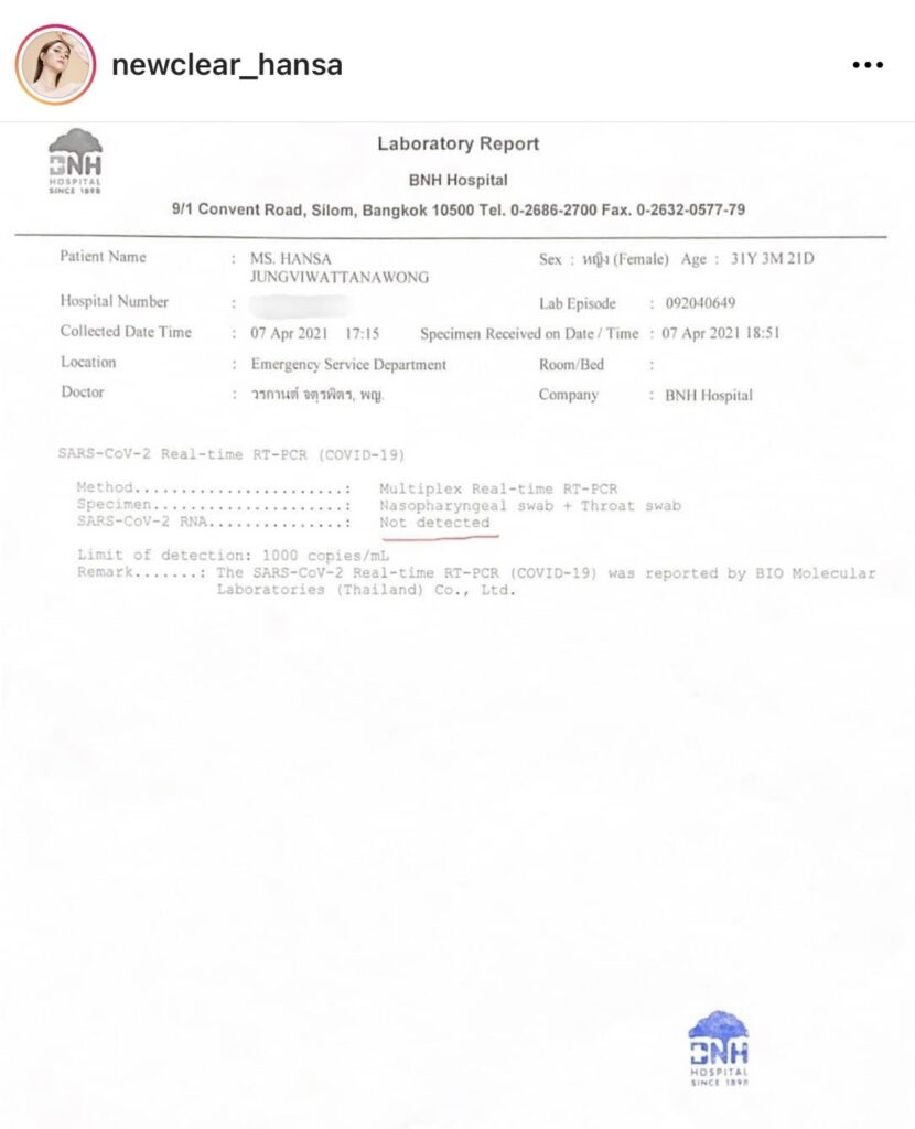 โดยล่าสุดผลตรวจออกมาเป็นที่เรียบร้อย ซึ่งสาวนิวเคลียร์ และ น้องไทก้า เผยผลออกมาเป็นลบ คือไม่พบเชื้อโควิด-19 พร้อมขอกักตัวต่อจนครบ 14 วันตามกำหนด