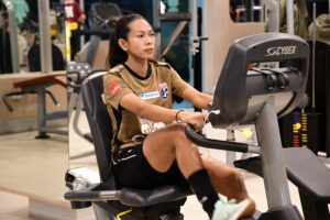 การฝึกซ้อมครั้งนี้ “โค้ชหนึ่ง” หนึ่งฤทัย สระทองเวียน รักษาการหัวหน้าผู้ฝึกสอนฟุตบอลหญิงทีมชาติไทย ปรับโปรแกรมไปเข้าฟิตเนสแทน หลังมีฝนตกลงมาอย่างหนัก โดยเน้นไปที่ การเสริมสมรรถภาพร่างกาย และความแข็งแรงของกล้ามเนื้อซึ่งใช้เวลาฝึกซ้อม 1 ชั่วโมง