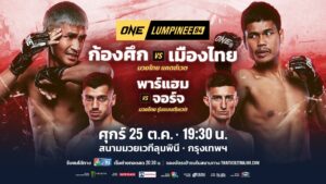 สำหรับสัปดาห์นี้ศึก ONE ลุมพินี 84 คู่เอกนำรายการ “ก้องศึก แฟร์เท็กซ์” นักสู้มากฝีมือ จากเมืองย่าโมโคราช พบกับ “เมืองไทย พีเค.แสนชัย” นักชกเจ้าของฉายา “ขุนศอกผีดิบ” จากบุรีรัมย์ ในกติกามวยไทย พิกัดเฉพาะ (แคตช์เวต) 137 ป.