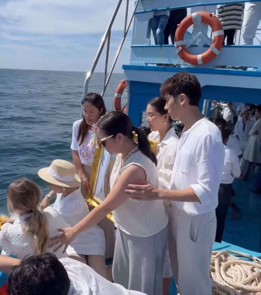 ”ดาเรีย“ พร้อม “ครอบครัว” จัดพิธีทำบุญและลอยอังคาร ส่ง “อ๋อม” ครั้งสุดท้าย ชาวเน็ตเข้ามาร่วมส่งเป็นจำนวนมาก