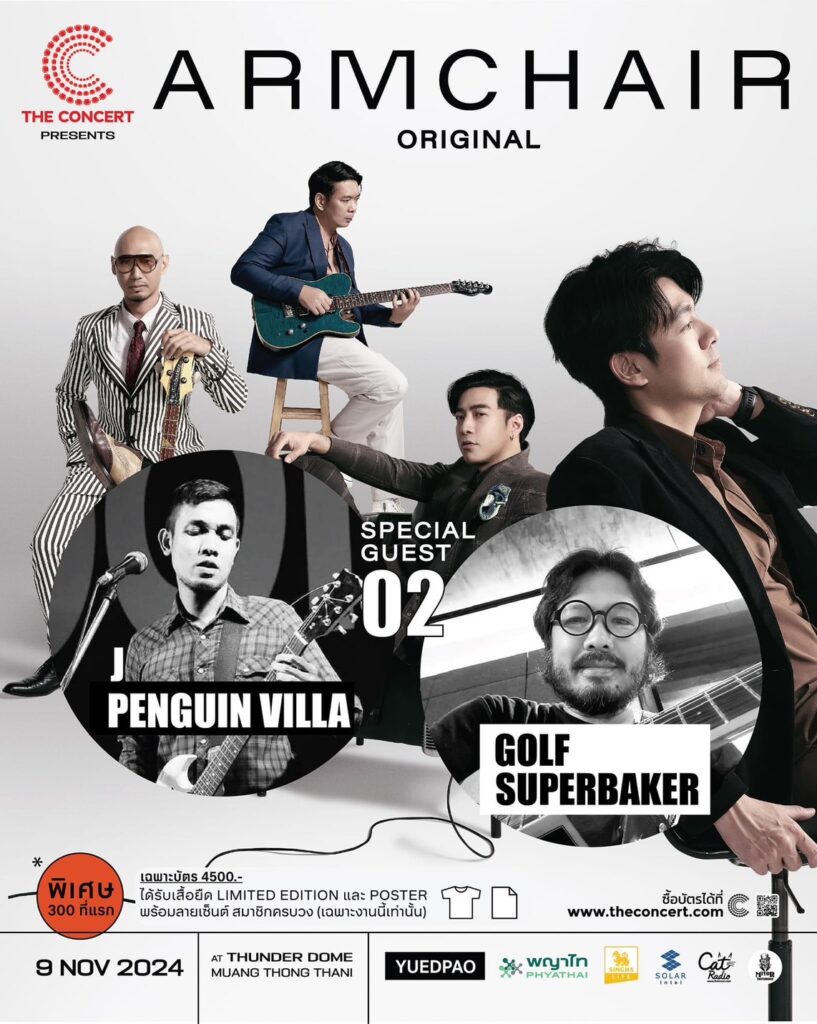 ถ้าอยากรู้ว่าภาพจากเงาปริศนาตัวจริงของพวกเขาจะเป็นใครกันบ้างนั้น??? รีบกดบัตรแล้วมานั่งชม นั่งลุ้นไปพร้อมกันกับคอนเสิร์ตใหญ่เต็มรูปแบบที่มี Line Up ARMCHAIR Original ทั้ง 4 คน ที่จะได้ร่วมเล่นด้วยกันครั้งสุดท้าย ใน THE CONCERT Present “ARMCHAIR Original Concert” เพียงรอบการแสดงเดียวเท่านั้น ในวัน เสาร์ ที่ 9 พฤศจิกายน 2567 เวลา 19.00 น. สถานที่ : THUNDER DOME MUANG THONG THANI ซื้อบัตรได้ทาง The Concert Application : https://www.theconcert.com/concerts/armchair-original-concert เพราะนี่คืออีกหนึ่งคอนเสิร์ตแห่งปีที่ไม่อยากให้พลาดโดยเด็ดขาด