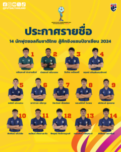 มิเกล โรดริโก้ หั่นเองกับมือ 14 แข้งสุดท้าย “เทอดศักดิ์-ณรงค์ศักดิ์-กฤษณ์” นำทัพป้องกันแชมป์ฟุตซอลอาเซียน2024 ที่ เทอร์มินอล 21 จ.นครราชสีมา 2-10 พ.ย.นี้ เข้าชมฟรี ด้าน “บิ๊กทิน”สุทิน บัวตูม ผจก.ทีม ระบุ 14 คนสุดท้ายโค้ชมิเกลเลือกเองกับมือ นักเตะสายเลือดใหม่ที่พิสูจน์ให้ทีมงานเห็นแล้วว่ามีทัศนคติที่ดีเยี่ยม รวมถึง ยังมีจิตวิญญาณ-ระเบียบวินัย และไม่ประมาทคู่ต่อสู้ กับสายเลือดใหม่ของทีมฟุตซอลทีมชาติไทยนิวเจน พร้อมมุ่งหน้าล่าแชมป์อาเซี่ยนสมัย 17 พร้อมซูฮกทุกสโมสรและโค้ชของแต่ละทีมที่สร้างนักเตะของตัวเองให้กลายเป็นทรัพยากรสำคัญในระดับชาติได้เป็นอย่างดี โดยรายการนี้ยิงสดทุกนัดผ่าน ยูทูป และ เฟสบุ๊ค ฟุตซอลไทยแลนด์ และ ช้างศึก รับประกัน มันส์ทุกคู่