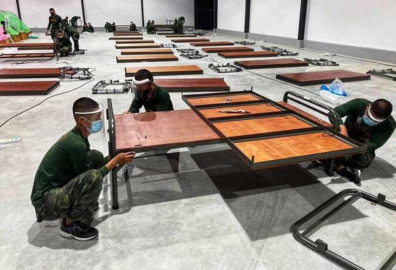 โดยพิจารณาจัดตั้งในพื้นที่โล่ง อากาศถ่ายเทได้สะดวก, ห่างไกลจากแหล่งชุมชน อาทิ กรมทหารปืนใหญ่ต่อสู้อากาศยานที่ 1 ถ.แจ้งวัฒนะ กทม. จำนวน 200 นาย,กรมพลาธิการทหารบก จ.นนทบุรี 50 เตียง, ค่ายฝึกนักศึกษาวิชาทหารเขาชนไก่ จ.กาญจนบุรี 300 เตียง, กรมการทหารช่าง จ.ราชบุรี 740 เตียง และกองพันทหารเสนารักษ์ในทุกกองทัพภาค อีก 930 เตียง ซึ่งเป็นการนำศักยภาพของกองทัพ ทั้งด้านบุคลากร ยานพาหนะและสิ่งอุปกรณ์ เตียงสนาม พร้อมเครื่องนอน หมอนมุ้ง ในการจัดการดูแลรักษาผู้ติดเชื้อ