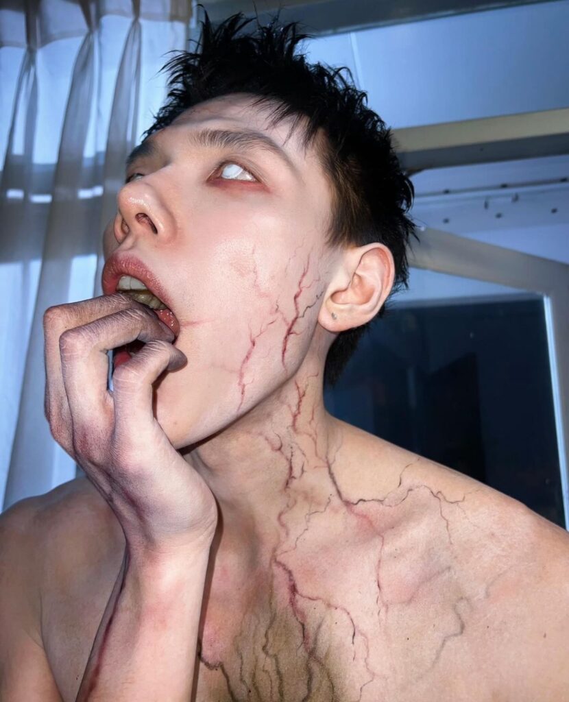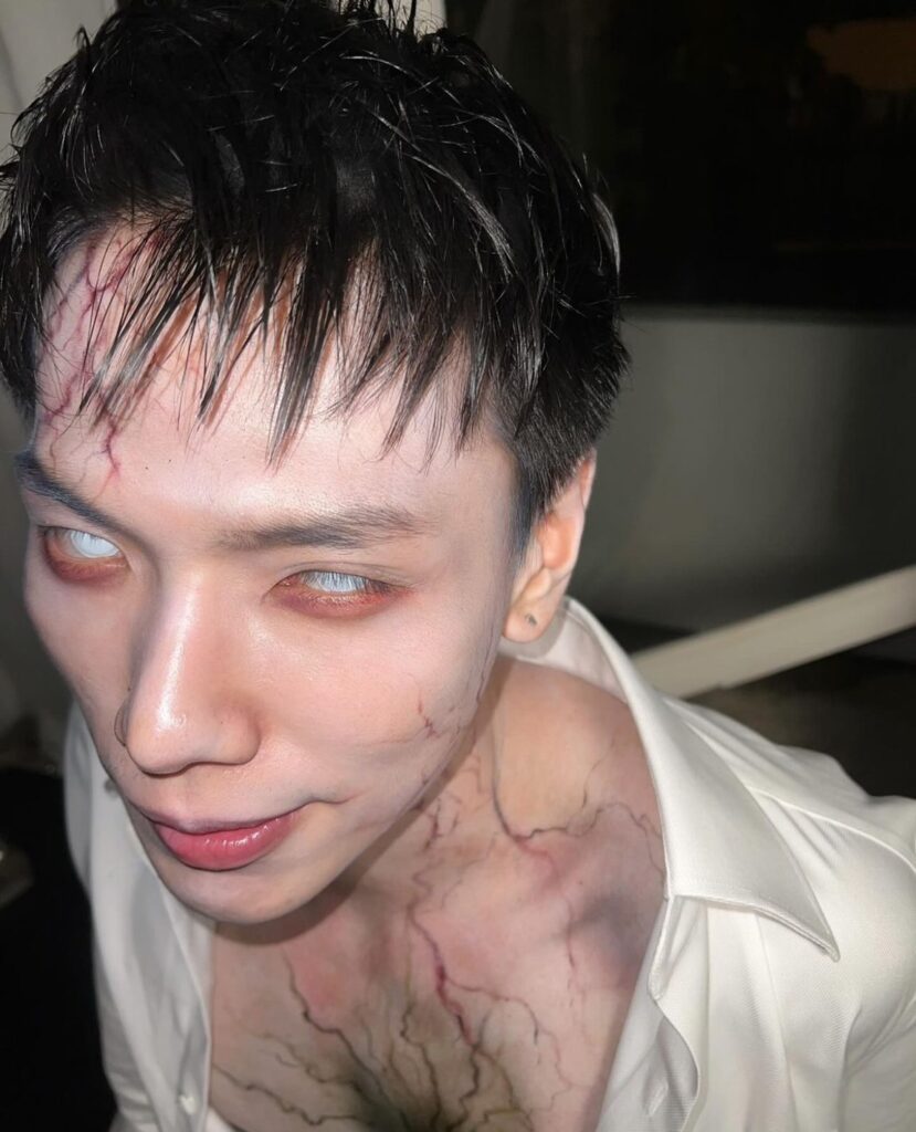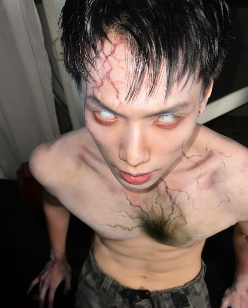 โดย “ต้าห์อู๋” มาในลุคแต่งหน้าจัดเต็ม ทั้ง คอนแทคเลนส์ที่ใส่แล้วน่ากลัว ถอดเสื้อ โชว์ซิกแพ็คแน่นๆ ไม่รู้ว่าจะโฟกัสตรงไหนดี