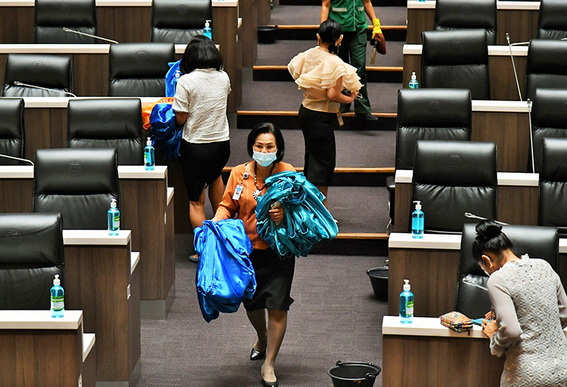 Big Cleaning Day ห้องประชุมรัฐสภา หลังปิดสมัย โดยการฉีดน้ำยาฆ่าเชื้อโควิด-19 พร้อมทำความสะอาดภายในและบริเวณโดยรอบ