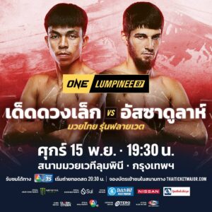 สำหรับ “เด็ดดวงเล็ก” เจ้าของแชมป์ Road To ONE Thailand ซีซัน 1 ซึ่งได้รางวัลเป็นสัญญานักกีฬา ONE มูลค่า 100,000 ดอลลาร์สหรัฐ (ราว 3.3 ล้านบาท) ฝากผลชนะ 1 และแพ้ 1 ในศึก ONE (ใหญ่) โดยล่าสุดแพ้คะแนนคู่ปรับเก่า “นักรบ แฟร์เท็กซ์” ในศึก ONE Fight Night 24 เมื่อ 3 ส.ค.ที่ผ่านมา โดยครั้งนี้ พร้อมกลับมาใช้ศึก ONE ลุมพินี เป็นเวทีกู้คืนฟอร์มเก่ง ขอหยุดความร้อนแรงของ “อัสซาดูลาห์” ลุ้นหยิบแต้มชัยครั้งที่ 5 ของรายการนี้ให้ได้