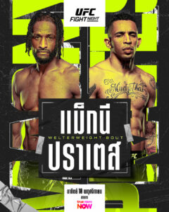 สำหรับศึก UFC FIGHT NIGHT : MAGNY VS PRATES จะระเบิดศึกกัน ณ สังเวียน UFC APEX ,ลาส เวกัส สหรัฐอเมริกา ,วันอาทิตย์ที่ 10 พฤศจิกายนนี้ คู่หลักของรายการเริ่มเวลา 07.00 น. ตามเวลาประเทศไทย