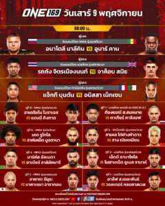 นับถอยหลังอีกเพียงไม่กี่ชั่วโมงข้างหน้า ความสนุกครบรสชาติที่แฟนกีฬาการต่อสู้ทั่วโลกเฝ้ารอคอย กำลังจะระเบิดขึ้นในศึก ONE 169 ที่จะจัดขึ้น ณ สนามมวยเวทีลุมพินี (รามอินทรา) ในช่วงไพรม์ไทม์อเมริกา ซึ่งตรงกับเวลา 08.00 น. วันเสาร์ที่ 9 พ.ย.นี้