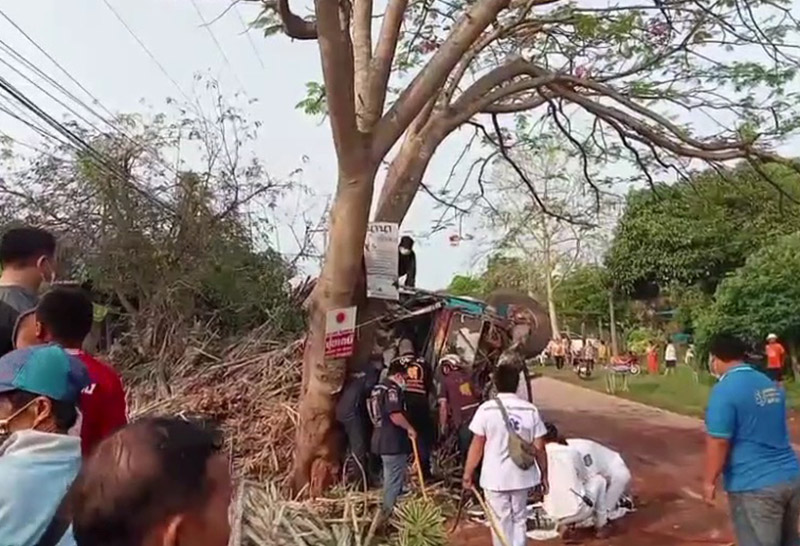 สิบล้อเบรคแตกพุ่งอัดต้นไม้ดับ1สาหัส2