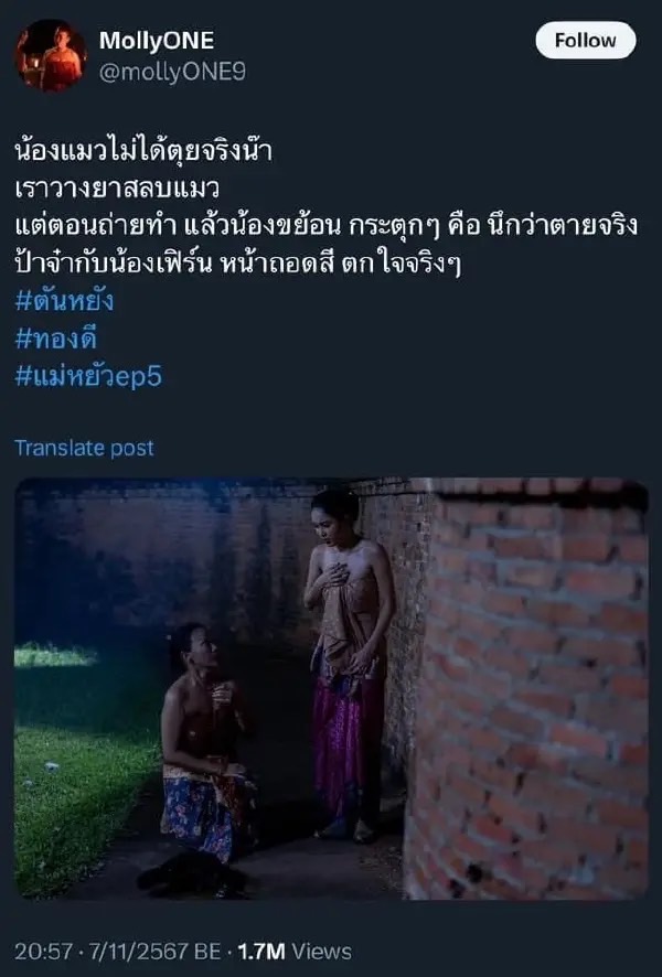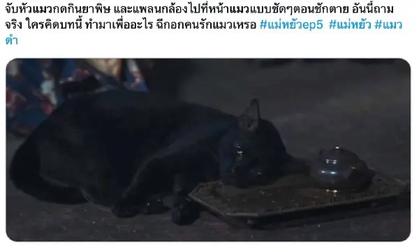 ตกเป็นประเด็นใหญ่ที่คนไทยออกมาแสดงความคิดเห็นวิพากษ์วิจารณ์กันสนั่นเต็มโลกออนไลน์ สำหรับละครฟอร์มยักษ์ช่องวัน “ แม่หยัว” โดยมีฉากหนึ่งของละครที่ปรากฏภาพพระสนมตันหยง หรือ “เฟิร์น นพจิรา” พิสูจน์ชาว่า มียาพิษหรือเปล่า ด้วยการเทชาลงในถาดให้แมวลองดื่ม จึงทำให้มีอาการกระตุก และขย้อนๆออกมา ทำเอาชาวเน็ตมองว่าเป็นการทารุณสัตว์ จึงออกมาแฮชแท็กแบรนด์ “แม่หยัว” ขึ้นเทรนด์ X อย่างรวดเร็ด
