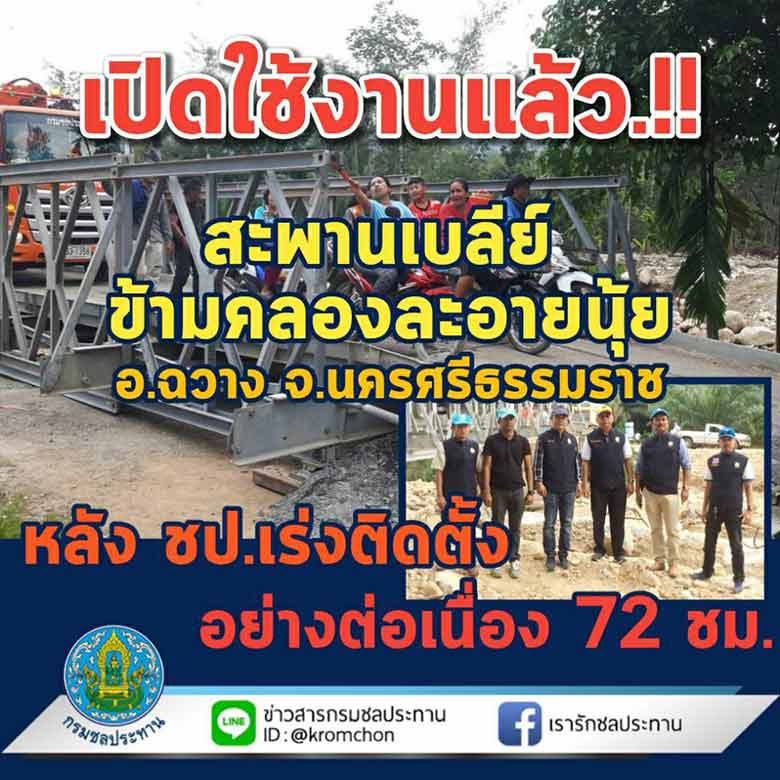 เปิดใช้งานแล้ว!สะพานเบลีย์ข้ามคลองละอายนุ้ย