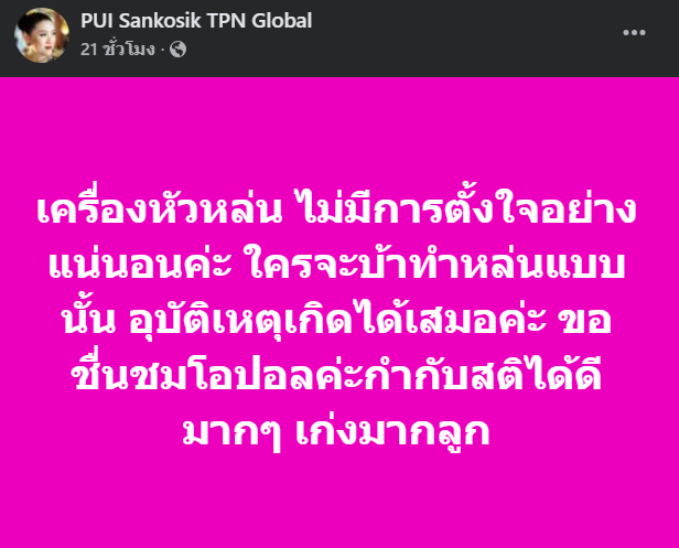 ”โอปอล สุชาตา“ miss universe thailand 2024 ที่ได้ทำเครื่องหัวชฎาได้หล่นลงกลางเวทีการประกวด miss universe 2024 รอบ Preliminary Competition โดยโพสต์ข้อความว่า ”เครื่องหัวหล่น ไม่มีการตั้งใจอย่างแน่นอนค่ะ ใครจะบ้าทำหล่นแบบนั้น อุบัติเหตุเกิดได้เสมอค่ะ ขอชื่นชมโอปอลค่ะกำกับสติได้ดีมากๆ เก่งมากลูก”