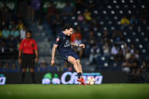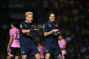 นาทีที่ 49 ศศลักษณ์ ไหประโคน ได้บอลหน้ากรอบจ่ายสั้นให้ ลูคัส คริสปิม แต่งบอลเข้าในปั่นด้วยเท้าขวาข้างถนัดบอลลอยโค้งไปชนคานอย่างได้เสียวก่อนจะเด้งออกหลังไป