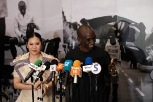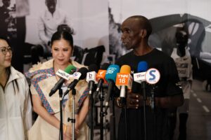 “เอเลียด คิปโชเก” ตำนานนักวิ่งมาราธอนโลก แชมป์โอลิมปิกเกมส์ 2 สมัย ชาวเคนยา บินมาถึงไทยแล้ว เพื่อลงแข่งขันวิ่งมาราธอนส่งเสริมการท่องเที่ยวระดับโลก ครั้งที่ 7 ประจำปี 2567 “อะเมซิ่ง ไทยแลนด์ มาราธอน แบงค็อก พรีเซ็นต์บาย โตโยต้า ครั้งที่ 7” วันที่ 1 ธ.ค.นี้ พระบาทสมเด็จพระเจ้าอยู่หัว และสมเด็จพระนางเจ้าฯ พระบรมราชินีฯ ทรงพระกรุณาโปรดเกล้าโปรดกระหม่อม ให้ “คิปโชเก” และภรรยา เข้าเฝ้าฯ ถวายเสื้อแข่งขันและรายงานความพร้อมในการจัดการแข่งขัน นับเป็นพระมหากรุณาธิคุณอย่างหาที่สุดมิได้