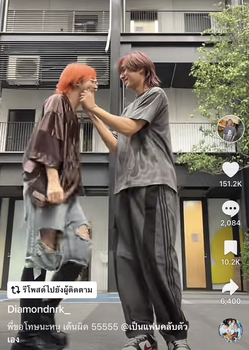 แต่ว่าล่าสุดทั้งคู่ก็เสิร์ฟความฟินอีกแล้วกับคลิปเต้นคู่กันในติ๊กต๊อกของหนุ่ม “ไดร์ม่อน” เรียกได้ว่าสร้างความฟินไม่พอ สร้างความสงสัยให้กับแฟน ๆ อีกแล้ว เพราะว่าแคปชั่นในติ๊กต๊อกของหนุ่ม “ไดร์ม่อน” เขียนว่า “พี่ขอโทษนะหนู พี่เต้นผิด5555”