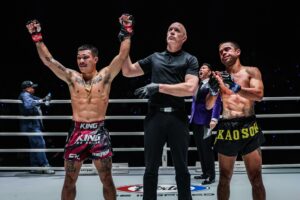 ไม่ทำให้แฟนกีฬาการต่อสู้มากกว่า 190 ประเทศทั่วโลกต้องผิดหวัง สำหรับความตื่นเต้นเร้าใจระดับ 5 ดาว ของศึก ONE Fight Night 26 เมื่อช่วงเช้าวันเสาร์ที่ 7 ธ.ค.ที่ผ่านมา ณ สนามมวยเวทีลุมพินี (รามอินทรา) โดยผลปรากฏว่าคู่เอกชิงแชมป์โลก ONE MMA รุ่นไลต์เวต (155-170 ป.) ต้องจบลงแบบไม่มีผลการแข่งขัน ทำให้ “คริสเตียน ลี” ยังคงสถานะแชมป์ของรุ่นต่อไป ขณะที่ “เมซซา บาสโตส” รักษาบัลลังก์ปล้ำจับล็อก รุ่นอะตอมเวต (105-115 ป.) ของตัวเองเอาไว้ได้สำเร็จ