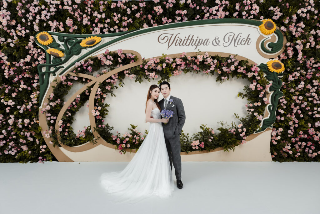 เรียกว่าฤกษ์ดีจัดพิธีฉลองมงคลสมรสเป็นที่เรียบร้อย สำหรับ คู่รัก “วุ้นเส้น วิริฒิพา ภักดีประสงค์” และ “นิกม์ ธนะภูมิ” จัดขึ้นที่ห้องนภาลัย เเกรนด์บอลรูม โรงเเรมดุสิตธานี กรุงเทพฯ ตกแต่งธีมงานอาร์ตหรูหรา Art Nouveau แต่งเต็มด้วยดอกกุหลาบหลากชนิดหน้าประตูทางข้าง ภายในงานประดับด้วยดอกไฮเดรนเยียฮอลแลนด์สุดตระการตา และกิมมิกของชำรวยที่คัดสรรมาจากความตั้งใจของคู่บ่าวสาว เป็นเทียนหอมกลิ่นพิเศษที่ปรุงใหม่ในงานวันนี้ ร่วมไปถึงผลิตภัณฑ์เซวา มอบให้กับแขกคนสำคัญในงาน และบลัชออนที่ทำขึ้นมาเฉพาะงานนี้โดยเฉพาะ