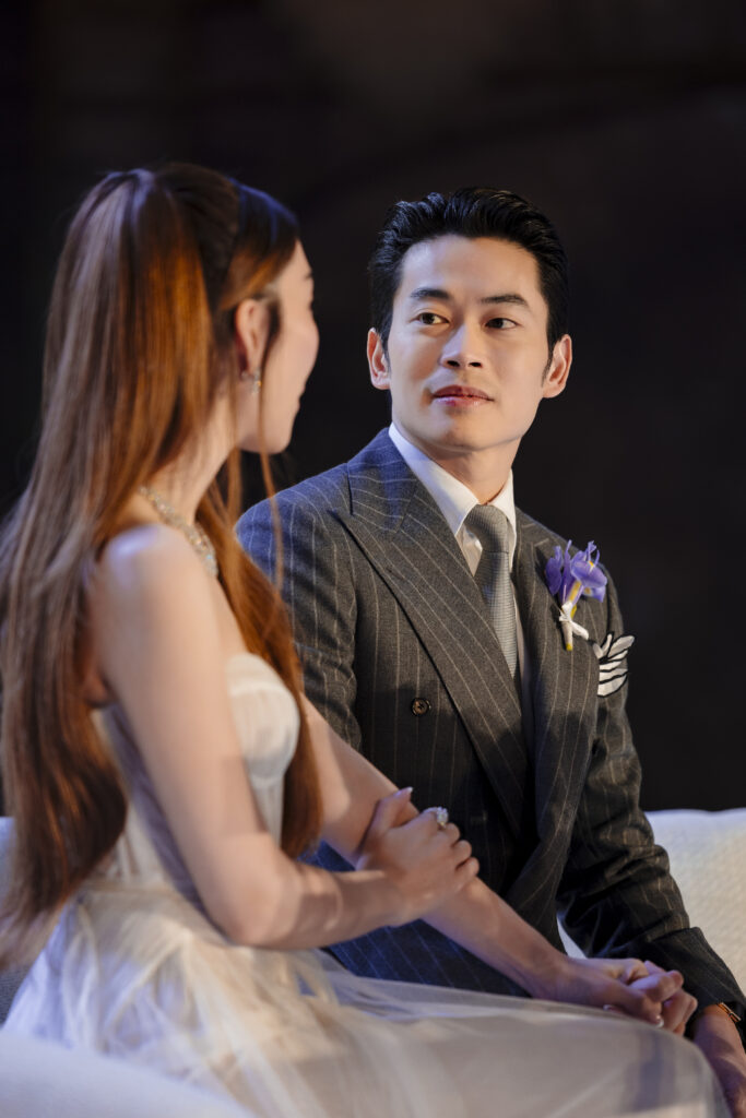 - ชุดเปิดตัวเจ้าสาวในงาน จากแบรนด์ asava ตัดเย็บพิเศษเป็นของขวัญวันแต่งงานจาก หมู อาซาว่า น้ำหนักชุดเวอร์วังถึง 10 กิโลกรัม พร้อมเครื่องประดับจาก Gemspavilion