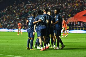 GOALLL!! นาทีที่ 90+3 คริกอร์ โมราเอส ได้บอลทางซ้ายเปิดบอลยาวขึ้นหน้าไปทางขวา นฤบดินทร์ วีรวัฒโนดม ดึงบอลลงแล้วโยกจังหวะหลอกคู่แข่งก่อนจะเปิดบอลมาที่เสาไกล เจฟเฟอร์สัน ทาบินาส ทะยานขึ้นไปโขกกดบอลเข้าประตูไป ปราสาทสายฟ้า ทิ้งห่างเป็น 6-0